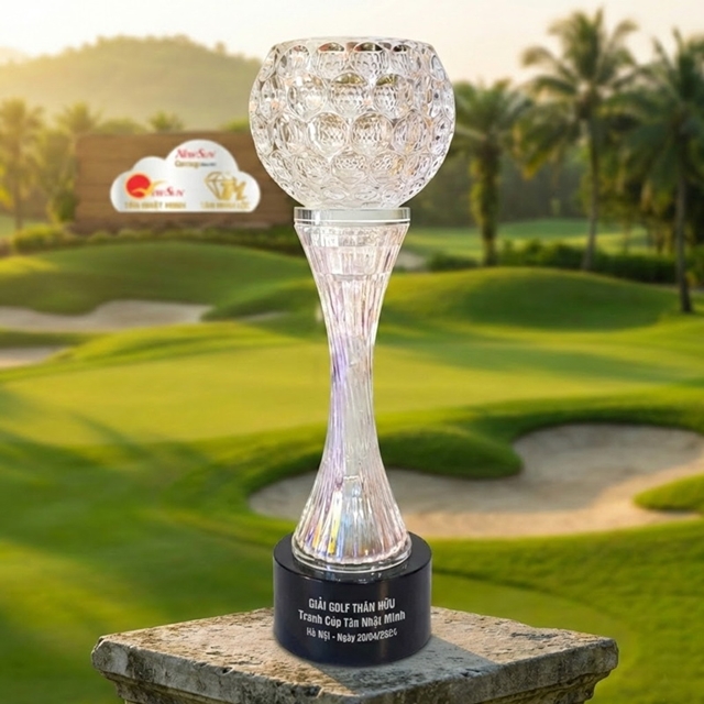 Đây là dòng cúp Nhập khẩu nguyên kiện từ nước ngoài về. Đảm bảo pha lê thật 100%. Trong sáng và rất đẹp. Tân Nhật Minh vinh dự hơn 10 năm Nhập khẩu cúp golf pha le tphcm