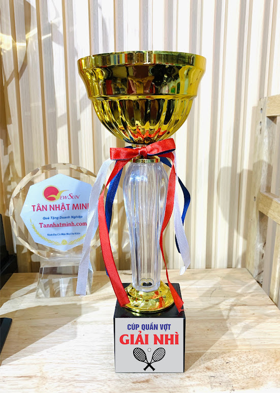 Đặc biệt, Tân Nhật Minh cũng cung cấp dịch vụ làm cúp theo yêu cầu. Bạn có thể tùy chỉnh thiết kế, chất liệu và in ấn trên cúp để tạo ra một sản phẩm duy nhất và cá nhân hóa. Điều này rất phù hợp cho các giải đấu quần vợt, sự kiện công ty hoặc các buổi lễ trao giải.
