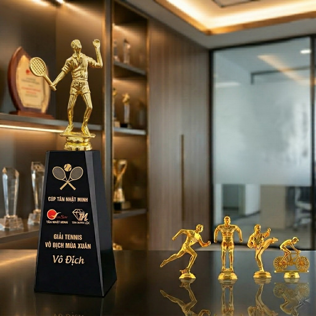 * Với dòng cúp nhập có thể là cúp kim loại, cúp pha lê, cúp nhựa: