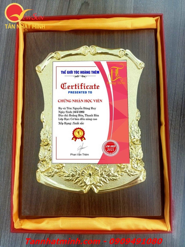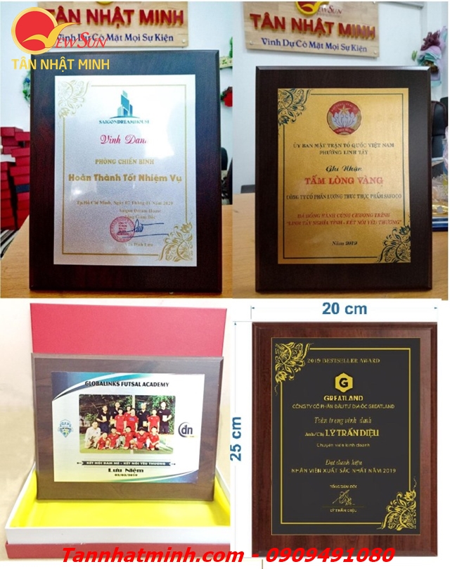 Giá Bảng Vinh Danh niêm yết bán cho SL >100 cái! Đặt lẻ <5 cái Vui lòng liên hệ bên em nha ( Zalo 0901460008). Tân Nhật Minh hơn 15 năm sản xuất Kỷ niệm chương Gỗ Đồng, bằng chứng nhận, bằng khen vinh danh... các loại